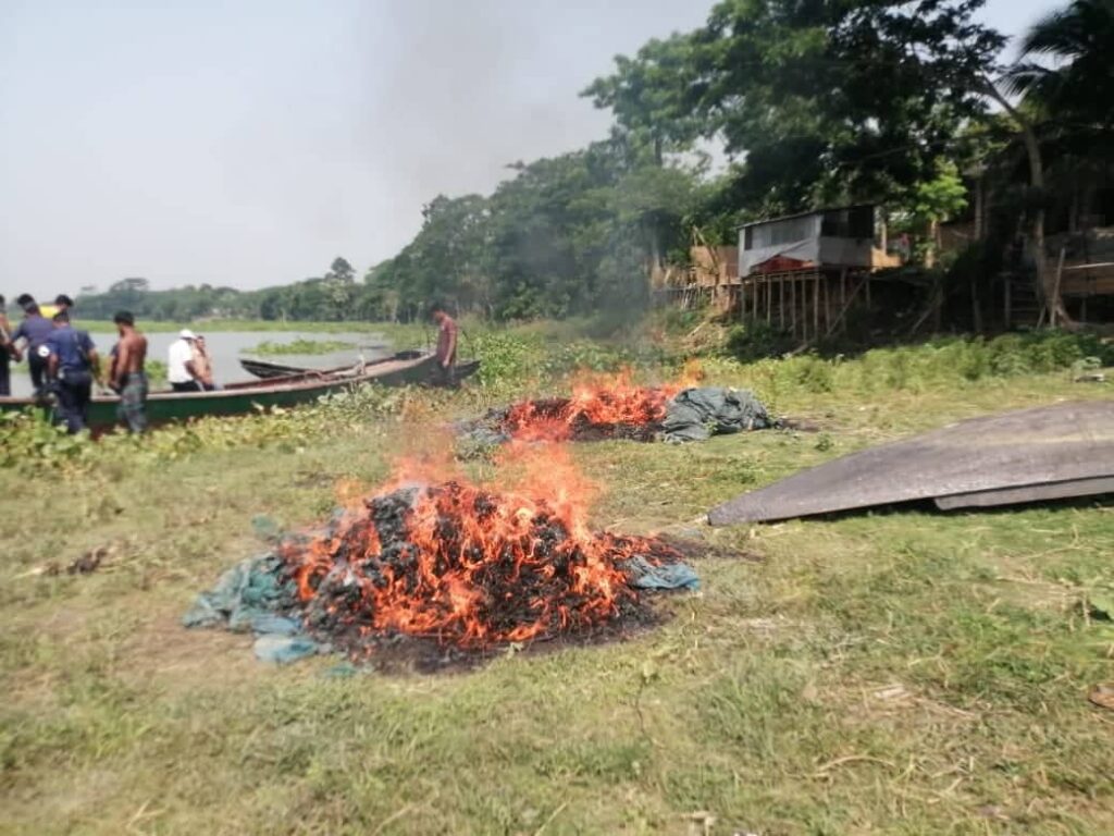 কাশিয়ানীর মধুমতি বাঁওড় থেকে সাড়ে ১২হাজার মিটার অবৈধ জাল আটক ও ধ্বংস