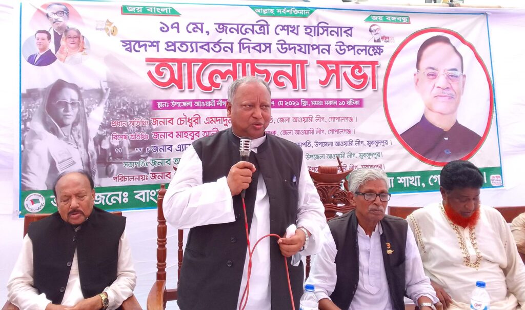 গোপালগঞ্জের মুকসুদপুরে প্রধানমন্ত্রী শেখ হাসিনার স্বদেশ প্রত্যাবর্তন দিবস উদযাপন উপলক্ষ্যে আলোচনা সভা করেছে উপজেলা আওয়ামী লীগ। মঙ্গলবার (১৭ মে) দুপুরে মুকসুদপুর উপজেলা আওয়ামী লীগের আয়োজনে উপজেলা সদর ঈদগাহ মাঠে আলোচনা সভা অনুষ্ঠিত।