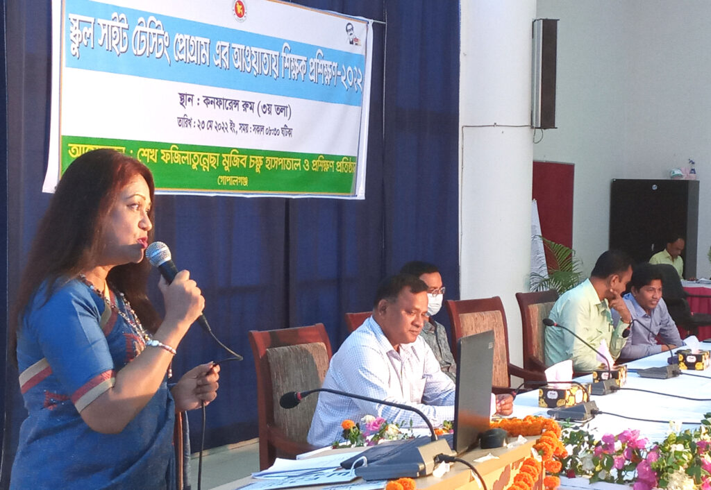 শিক্ষার্থীদের চক্ষু রোগ সম্পর্কে সচেতন ও লক্ষণ দেখে দ্রুত চিকিৎসার ব্যবস্থা করার লক্ষ্য নিয়ে গোপালগঞ্জে অনুষ্ঠিত হয়েছে স্কুল সাইট টেস্টিং প্রোগ্রামের আওতায় শিক্ষক প্রশিক্ষণ কর্মশালা । গোপালগঞ্জের  শেখ ফজিলাতুন্নেছা মুজিব চক্ষু হাসপাতাল ও প্রশিক্ষণ প্রতিষ্ঠান এ প্রশিক্ষণ কর্মসূচীর আয়োজন করে।