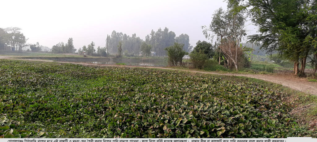 গোপালগঞ্জ সদর উপজেলার কাজুলিয়া ইউনিয়নের পিঠাবাড়ি ও তাড়গ্রামের ক্ষতিগ্রস্থ জমির মালিকদের সূত্রে জানাগেছে, বিগত তিনবছর  পিঠাবাড়ি ব্রীজের দক্ষিণপাশ দিয়ে লক্ষীপুরা গ্রামের মসজিদ পর্যন্ত প্রায় দেড় কিলোমিটার এলাকায়  মাটির রাস্তা নির্মাণ করা হয়। এর আগে ও পরে রাস্তার দুইপাশে ৭/৮ টি মৎস্য ঘের তৈরী হয়। এসব ঘেরের পাড় ও রাস্তার কারনে পিঠাবাড়ি – তাড়গ্রাম বিলের প্রায় এক হাজার বিঘা জমি সময়মতো চাষাবাদের আওতায় আসছে না। চাষাবাদ নামী (দেরী)  হওয়ায় উৎপাদিত ফসল জোয়ারের পানিতে নষ্ট হয়ে যায়। জমি করতে খরচ হলেও কাজের কাজ কিছুই হয় না। বরং শ্রমও অর্থ ব্যয় করে লোকসানের  মুখোমুখি হতে হচ্ছে জমির মালিকদের।