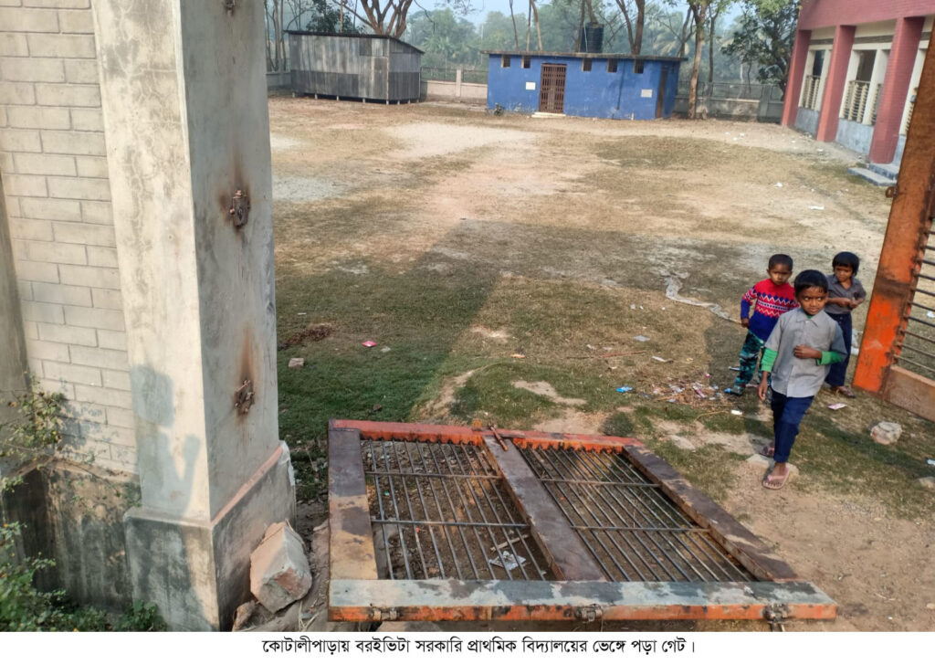 গোপালগঞ্জের কোটালীপাড়ায় একটি প্রাথমিক বিদ্যালয়ের গেট ভেঙ্গে আরাফাত সানী নামে এক ছাত্র আহত হয়েছে। আহত ওই ছাত্রকে উপজেলা স্বাস্থ্য কেন্দ্র থেকে প্রাথমিক চিকিৎসা দিয়ে বাড়িতে নিয়ে গিয়েছে তার পরিবার। শনিবার (২১ জানুয়ারী) বিকেলে উপজেলার বরইভিটা সরকারি প্রাথমিক বিদ্যালয়ে এ ঘটনা ঘটে।আহত আরাফাত সানী বিদ্যালয়ের দ্বিতীয় শ্রেণির ছাত্র ও বরইভিটা গ্রামের আলামিন শিকদারের ছেলে।