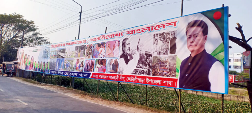 গোপালগঞ্জের কোটালীপাড়া পৌরসভা নির্বাচনে মনোনয়ন পেতে ও ভোটারদের দৃষ্টি আকর্ষণের জন্য টানানো হয়েছে ১০ফুট চওড়া এবং ২০০ফুট লম্বা একটি ব্যানার । উপজেলা আওয়ামী লীগের সিনিয়র সদস্য ও সম্ভব্য মেয়র প্রার্থী জাহাঙ্গীর হোসেন খানের পক্ষ থেকে পৌর ভবনের সামনের সড়কে এই ব্যানার টানানো হয়।