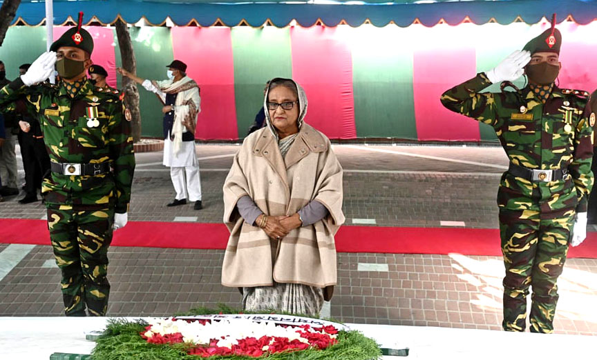 টুঙ্গিপাড়ায় বঙ্গবন্ধুর সমাধিতে প্রধানমন্ত্রীর শ্রদ্ধা