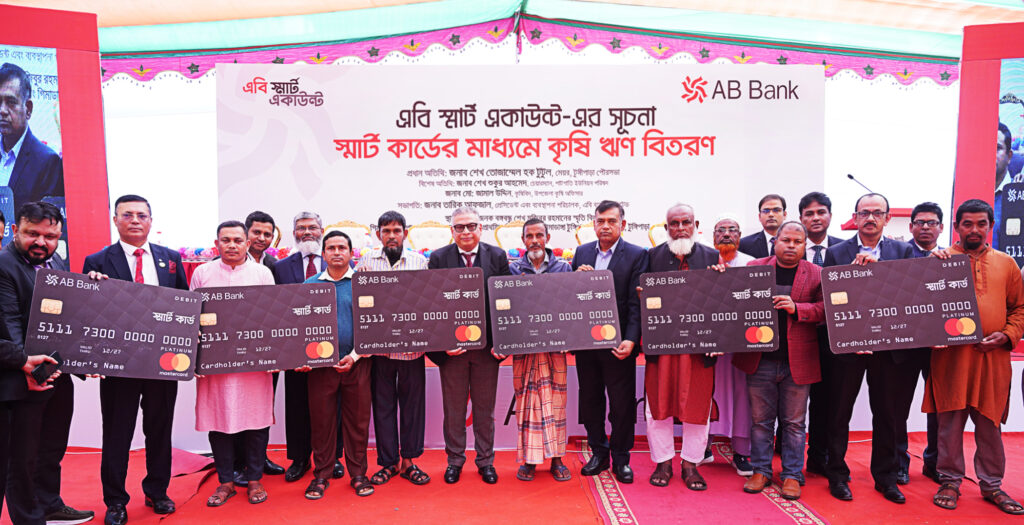 গোপালগঞ্জের টুঙ্গিপাড়ায় স্মার্ট কার্ডের মাধ্যমে প্রান্তিক কৃষকদের মাঝে কৃষি ঋণ বিতরণ করেছে এবি ব্যাংক। মঙ্গলবার (২৩ জানুয়ারী) বেলা ১২ টায় উপজেলার গিমাডাঙ্গা টুঙ্গিপাড়া (জি.টি) মডেল সরকারি প্রাথমিক বিদ্যালয়ে উপজেলার ১০৭ জন কৃষকের মাঝে স্মার্ট কার্ডের মাধ্যমে ঋণ বিতরন করা হয়। এর মধ্যে দিয়ে সূচনা হলো এবি ব্যাংকের স্মার্ট একাউন্ট।বিতরণ অনুষ্ঠানে এবি ব্যাংক লিমিটেডের প্রেসিডেন্ট ও ব্যবস্থাপনা পরিচালক তারিক আফজালের সভাপতিত্বে প্রধান অতিথি হিসেবে উপস্থিত ছিলেন টুঙ্গিপাড়া পৌর মেয়র শেখ তোজাম্মেল হক টুটুল।এসময় উপজেলা কৃষি কর্মকর্তা কৃষিবিদ জামাল উদ্দিন, পাটগাতী ইউপি চেয়ারম্যান শেখ শুকুর আহম্মেদ সহ এবি ব্যাংকের ঊর্ধতন কর্মকর্তাবৃন্দ উপস্থিত ছিলেন।