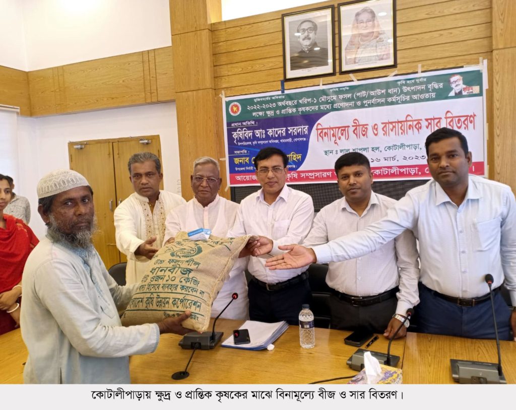 কোটালীপাড়ায় সাইত্রিশ ক্ষুদ্র ও প্রান্তিক কৃষকের মাঝে বিনামূল্যে বীজ ও সার বিতরণ