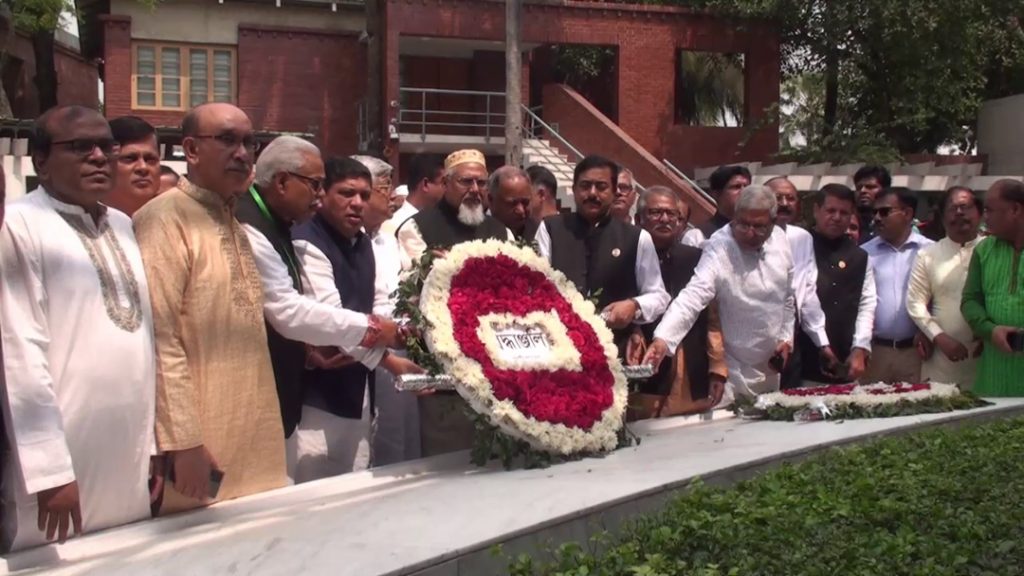 এর আগে ধর্ম প্রতিমন্ত্রী মোঃ ফরিদুল হক খান বঙ্গবন্ধুর সমাধিতে ফুল দিয়ে শ্রদ্ধা জানান তারা। পরে বঙ্গবন্ধু ও তাঁর পরিবারের শহীদ সদস্যদের রুহের মাগফেরাত কামনা করে ফাতেহা পাঠ ও বিশেষ মোনাজাতে অংশ নেন। এসময় হিন্দু-বৌদ্ধ-খ্রীষ্টান কল্যাণ ট্রাস্টের নেতৃবৃন্দ উপস্থিত ছিলেন।