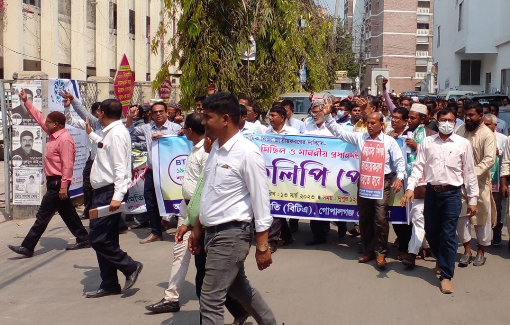 গোপালগঞ্জের বেসরকারি মাধ্যমিক শিক্ষকদের আন্দোলন! দাবী না মানলে কঠোর আন্দোলনের ঘোষণা