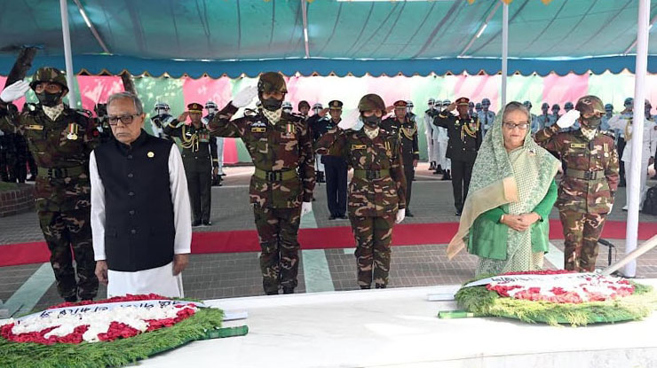 টুঙ্গিপাড়ায় বঙ্গবন্ধুর সমাধিতে রাষ্ট্রপতি ও প্রধানমন্ত্রীর শ্রদ্ধা