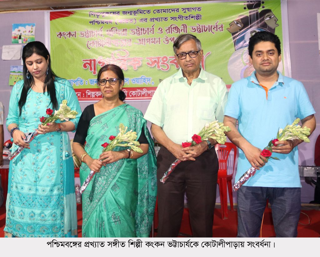 পশ্চিমবঙ্গের প্রখ্যাত সঙ্গীত শিল্পী কংকন ভট্টাচার্যকে কোটালীপাড়ায় সংবর্ধনা