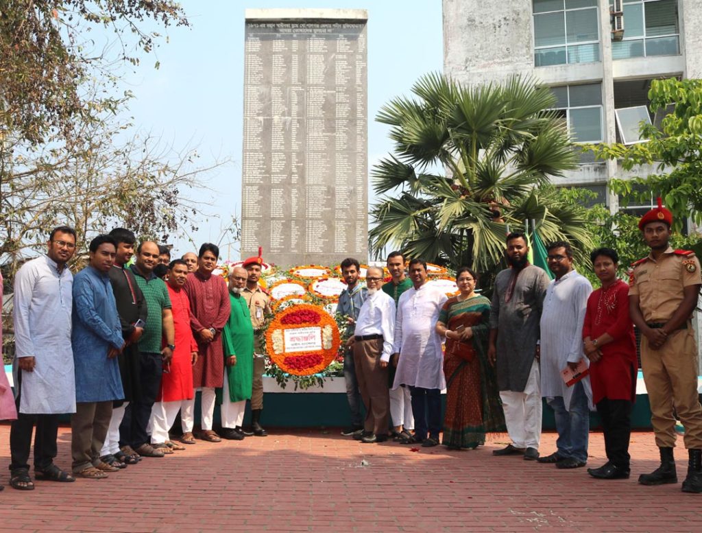 এর আগে স্বাধীনতা দিবসের প্রথম প্রহরে রাত সোয়া ১২ টায় ভাইস-চ্যান্সেলর প্রফেসর ড. এ. কিউ. এম. মাহবুবের নেতৃত্বে টুঙ্গিপাড়ায় জাতির পিতার সমাধিসৌধে পুষ্পমাল্য অর্পন করে শ্রদ্ধা নিবেদন করা হয়। এসময় বিশ^বিদ্যালয়ের ট্রেজারার প্রফেসর ড. মোঃ মোবারক হোসেন, শিক্ষক সমিতি, বঙ্গবন্ধু পরিষদ, বিশ^বিদ্যালয় ছাত্রলীগ, অফিসার্স এসোসিয়েশন ও কর্মচারী সমিতি পৃথকভাবে পুষ্পমাল্য অর্পন করে শ্রদ্ধা নিবেদন করেন। সকাল ১০টায় গোপালগঞ্জ শহরে শেখ কামাল স্টেডিয়াম সংলগ্ন শহীদ স্মৃতিস্তম্ভে ভাইস-চ্যান্সেলর প্রফেসর ড. এ. কিউ. এম. মাহবুব মাহবুবের নেতৃত্বে পুষ্পমাল্য অর্পন করে শ্রদ্ধা নিবেদন করা হয়। এসময় বিশ^বিদ্যালয়ের ট্রেজারার প্রফেসর ড. মোঃ মোবারক হোসেন ও শিক্ষক সমিতি মুক্তিযুদ্ধের সকল শহিদের প্রতি পুষ্পমাল্য অর্পন করে শ্রদ্ধা নিবেদন করেন।এসব অনুষ্ঠানে বিশ্ববিদ্যালয়ের শিক্ষক-শিক্ষার্থী ও কর্মকর্তা-কর্মচারীরা উপস্থিত ছিলেন।