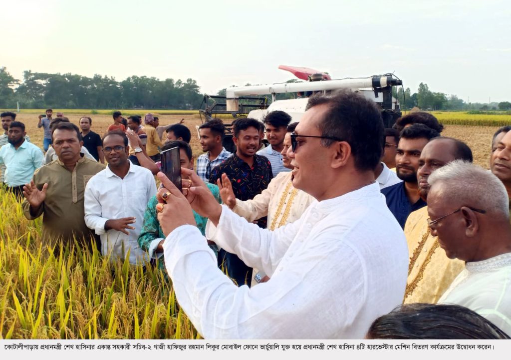 প্রধানমন্ত্রী শেখ হাসিনার একান্ত সহকারী সচিব-২ গাজী হাফিজুর রহমান লিকুর মোবাইল ফোনে ভার্চুয়ালি যুক্ত হয়ে প্রধানমন্ত্রী শেখ হাসিনা এই হারভেস্টার মেশিন বিতরণ কার্যক্রমের উদ্বোধন করেন।