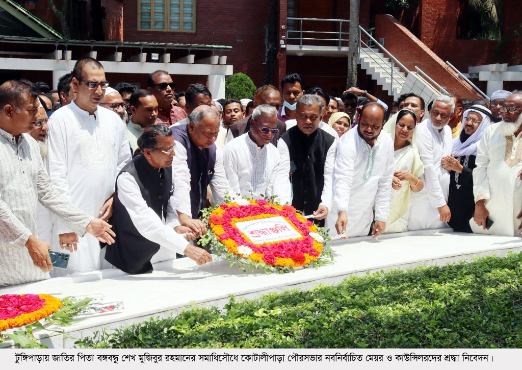 গোপালগঞ্জের টুঙ্গিপাড়ায় জাতির পিতা বঙ্গবন্ধু শেখ মুজিবুর রহমানের সমাধিসৌধে ফুল দিয়ে শ্রদ্ধা নিবেদন করেছেন কোটালীপাড়া পৌরসভার নবনির্বাচিত মেয়র মতিয়ার রহমান হাজরা ও কাউন্সিলরবৃন্দ।