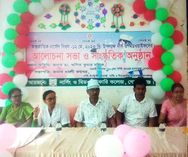 গোপালগঞ্জে আর্ন্তজাতিক নার্সেস দিবস পালিত হয়েছে। শুক্রবার (১২ মে) সকালে নার্সিং ও মিডওয়াইফারি কলেজের উদ্যোগে, বর্ণাঢ্য র্যালী ও কলেজ হল রুমে আলোচনা সভা অনুষ্ঠিত হয়। র্যালী উদ্বোধন করেন ২৫০ শয্যা জেনারেল হাসপতালের সহকারী পরিচালক ডাঃ অসিত কুমার মল্লিক । কলেজের ইনস্ট্রাকটর ইন চার্জ ধবলী জয়ধর এর সভাপতিত্ব্ আলোচনা সভায় বক্তব্য রাখেন কলেজের ইনস্ট্রাকটর অর্চনা খান, নির্পনা ভক্ত, কবি ও সাংবাদিক রবীন্দ্রনাথ অধিকারী, স্টুডেন্ট নার্স ফাহমিদা খানম, সম্পা দাস প্রমূখ। অনুষ্ঠানে ফ্লোরেন্স নাইটঙ্গেলের জন্মদিনের কেক কাটা হয়।