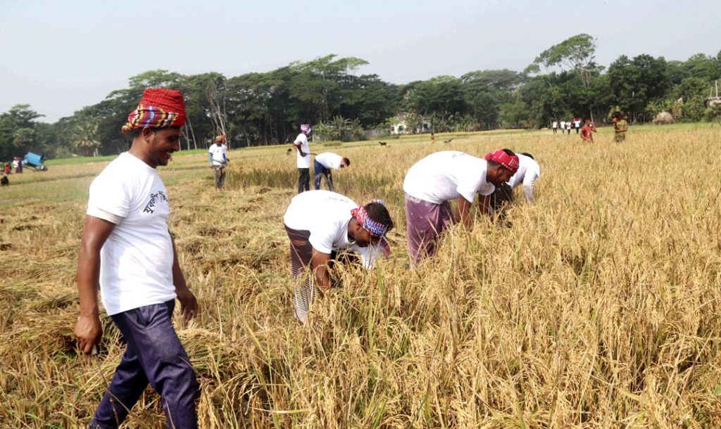 টুঙ্গিপাড়া যুবলীগ ধান কেটে দিলেন দরিদ্র কৃষকের
