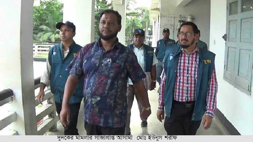 এই ঘটনার সুনির্দিষ্ট অভিযোগের ভিত্তিতে দুর্নীতি দমন কমিশন (দুদক) বিষয়টি তদন্ত করে এ ঘটনার সত্যতা পায়। পরে দুর্নীতি দমন কমিশন পটুয়াখালী জেলা কার্যালয়ের তৎকালীন উপপরিচালক মো. মোজাহার আলী সরদার বাদী হয়ে একটি মামলা দায়ের করেন। মামলার পরিপ্রেক্ষিতে সে সময়ে পটুয়াখালী সিনিয়র স্পেশাল জজ আদালতের মাধ্যমে তাকে ২০১৯ সালের ৯ সেপ্টেম্বর জেলহাজতে পাঠায়। একই ঘটনায় পবিপ্রবি থেকে ওই বছরের ২৩ সেপ্টেম্বর তাকে সাময়িক বহিষ্কার করা হয়। তদন্তাকালে ইউনুস শরীফ ওই ক্ষতিপ্রাপ্ত হওয়া ১৪ লাখ ৯২ হাজার, ৩৭৭ টাকা সরকারি কোষাগারে জমাও দেন। এছাড়াও আসাৎকৃত টাকা স্বেচ্ছায় ফেরত দেওয়ায় তদন্ত শেষে দুদকের অভিযোগপত্রে ইউনুস শরীফের বিরুদ্ধে আইনানুগ ব্যবস্থা নিতে সুপারিশ করা হয়।