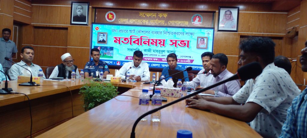 গোপালগঞ্জে “তথ্য প্রচারে স্মার্ট কৌশলের ব্যবহার নিশ্চিতকরণের লক্ষ্যে মতবিনিময় সভা অনুষ্ঠিত হয়।
