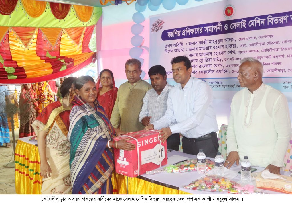 গোপালগঞ্জের কোটালীপাড়ায় আশ্রয়ণ প্রকল্পের নারীদের হস্তশিল্পের উপর ৩মাস ব্যাপী প্রশিক্ষণ শেষে সেলাই মেশিন বিতরণ করা হয়েছে।সোমবার (২৪ জুলাই) দুপুরে উপজেলা প্রশাসনের আয়োজনে উনশিয়া গ্রামের আশ্রয়ণ প্রকল্পের ২০জন নারীর মাঝে এ সেলাই মেশিন বিতরণ করা হয়।জেলা প্রশাসক কাজী মাহবুবুল আলম প্রধান অতিথি হিসেবে উপস্থিত থেকে এসব সেলাই মেশিন বিতরণ করেন।