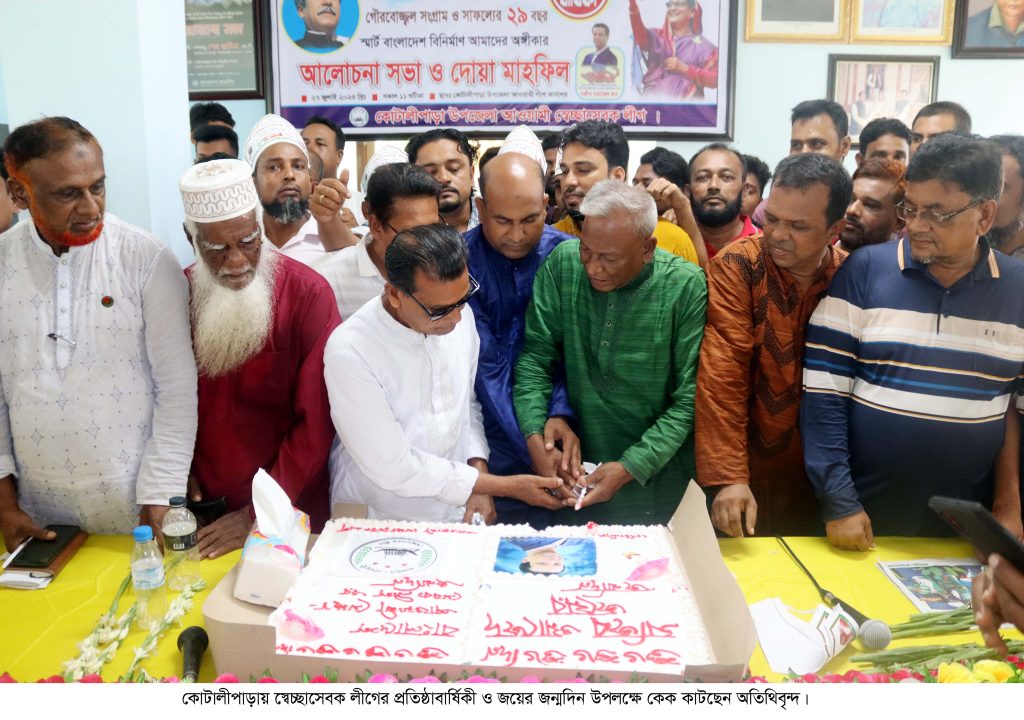 গোপালগঞ্জের কোটালীপাড়ায় স্বেচ্ছাসেবক লীগের ২৯তম প্রতিষ্ঠাবার্ষিকী ও বঙ্গবন্ধু শেখ মুজিবুর রহমানের দৌহিত্র, আওয়ামী লীগ সভাপতি প্রধানমন্ত্রী শেখ হাসিনার পুত্র সজীব ওয়াজেদ জয়ের জন্মদিন পালিত হয়েছে।