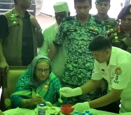 নেতাকর্মীদের সাথে পোলাও, সবজি, ডাল, খাসীর মাংস ও সেমাই খেলেন প্রধানমন্ত্রী