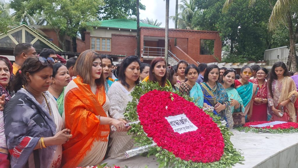 শুক্রবার (২১ জুলাই) দুপুরে আওয়ামী যুব মহিলা লীগের কেন্দ্রীয় কমিটির সভাপতি আলিয়া সরোয়ার ডেইজি ও সাধারণ সম্পাদক শারমিন সুলতানা লিলির নেতৃত্বে পূর্ণাঙ্গ কমিটির নেতৃবৃন্দ জাতির পিতা বঙ্গবন্ধু শেখ মুজিবুর রহমানের সমাধিতে পুষ্পস্তবক অর্পণ করে শ্রদ্ধা জানান।