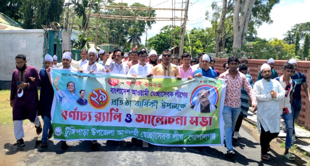 সেচ্ছাসেবকলীগের প্রতিষ্ঠা বার্ষিকীতে টুঙ্গিপাড়ায় শোভাযাত্রা ও আলোচনা সভা