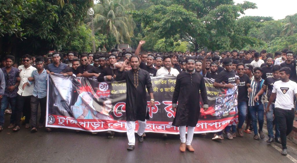 টুঙ্গিপাড়ায় ছাত্রলীগের শোক র‌্যালী
