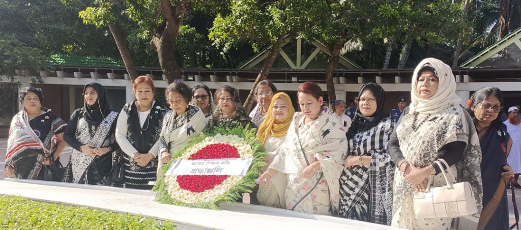 গোপালগঞ্জের টুঙ্গিপাড়ায় জাতির পিতা বঙ্গবন্ধু শেখ মুজিবুর রহমানের সমাধিতে শ্রদ্ধা নিবেদন করেছেন মন্ত্রী, প্রতিমন্ত্রী,এটর্নি জেনারেল ও সাবেক পররাষ্ট্র সচিবের সহধর্মিণীবৃন্দ। রবিবার (২০ আগস্ট) বিকালে তারা জাতির পিতার সমাধি সৌধ বেদীতে পুষ্পস্তবক অর্পণ করে শ্রদ্ধা নিবেদন করেন।পরে পবিত্র ফাতেহা পাঠ করে বঙ্গবন্ধু সহ ১৫ আগস্টে নিহত সকল শহীদদের রুহের মাগফেরাত কামনায় দোয়া ও মোনাজাতে অংশ নেন।এসময় পরিকল্পনা মন্ত্রীর সহধর্মিনী জোলেখা মান্নান, শিল্পমন্ত্রীর সহধর্মিনী নাদিরা মাহমুদ,কৃষি মন্ত্রীর সহধর্মিণী শিরীন আক্তার বানু,রেলমন্ত্রীর সহধর্মিণী শাম্মী আক্তার মনি,