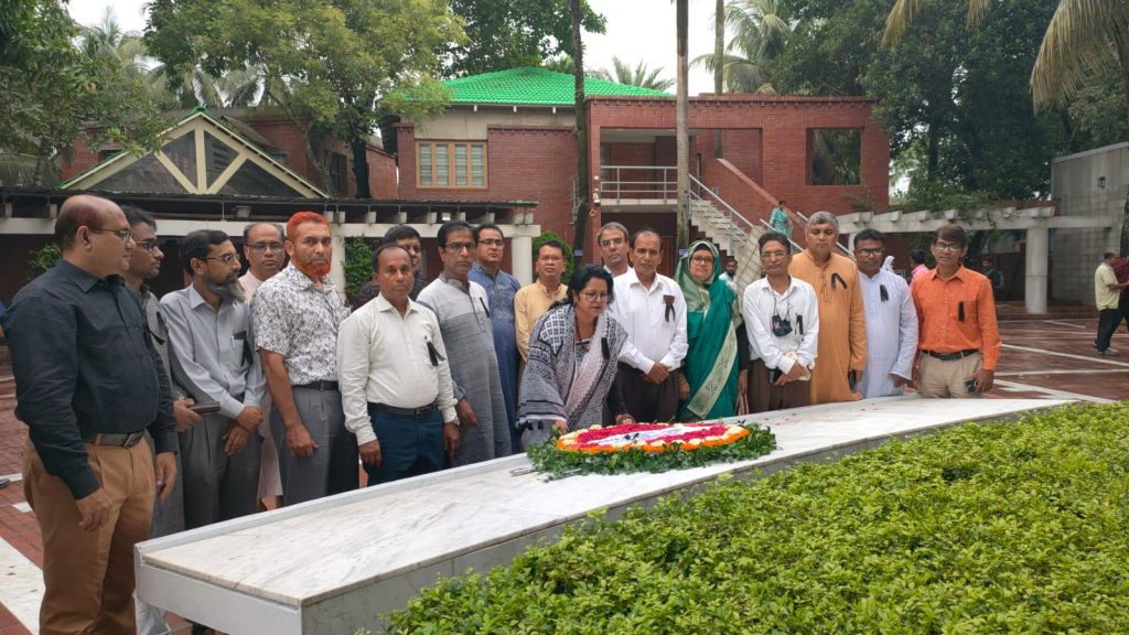 বঙ্গবন্ধুর সমাধিতে যশোরের মাইকেল মধুসূদন কলেজ কর্তৃপক্ষের শ্রদ্ধা