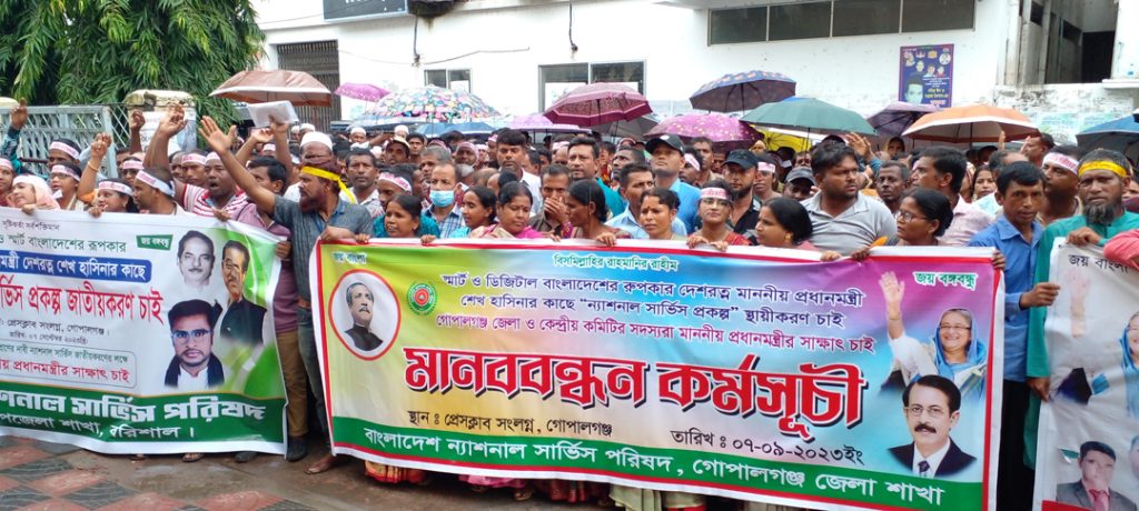 ন্যাশনাল সার্ভিস প্রকল্প স্থায়ীকরণের দাবীতে গোপালগঞ্জে মানববন্ধন-বিক্ষোভ