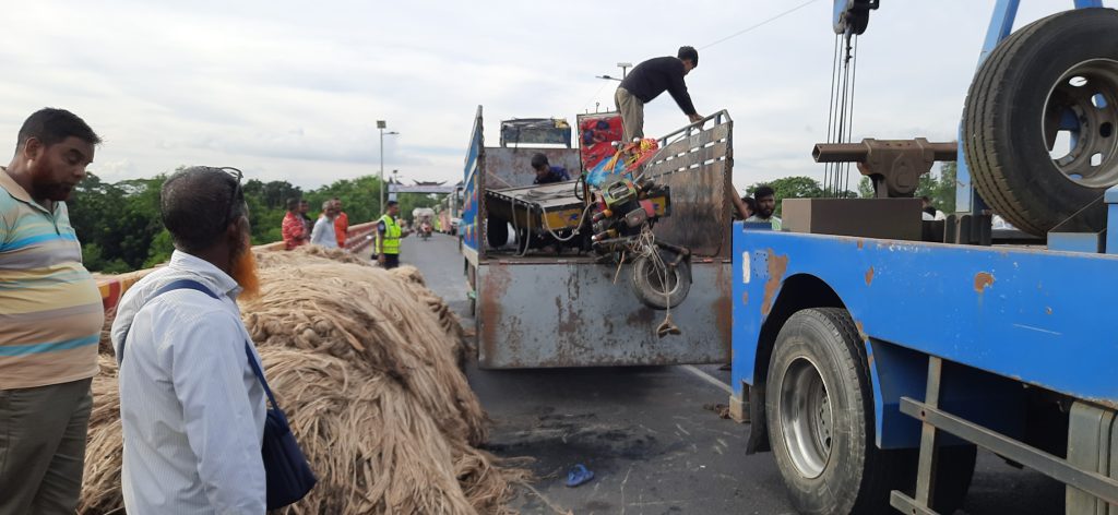 কাশিয়ানীর ভাটিয়াপাড়া হাইওয়ে পুলিশের উপ-পরিদর্শক সিরাজুল ইসলাম ঘটনার সত্যতা নিশ্চিত করে জানান, পাট ব্যবসায়ী হাবিবুর গোপালগঞ্জ সদরের বিভিন্ন স্থান থেকে পাট কিনে একটি নসিমনে করে একই উপজেলার বোয়ালিয়া বাজারে যাচ্ছিলেন। পথিমধ্যে হরিদাসপুর ব্রিজ পার হওয়ার সময় ব্রিজের উপর নসিমনের এক্সেল ভেঙ্গে পাটের উপরে বসে থাকা ব্যবসায়ী হাবিবুর ব্রিজের সড়কে ছিটকে পড়ে।  এসময় পিছন থেকে ঢাকাগামী সুন্দবন পরিবহনের একটি বাস হাবিবুরকে চাপা দিয়ে চলে যায়। এতে দুইজনই মারাত্মক আহত হয়। আহতদেরকে সদর হাসপাতালে নেয়া হলে কর্তব্যরতঃ চিকিৎসক হাবিবুরকে মৃত ঘোষনা করেন। পরে পরিবারের আবেদনের ভিত্তিত্বে লাশ স্বজনদের কাছে হস্তান্তর করা হয়েছে।
