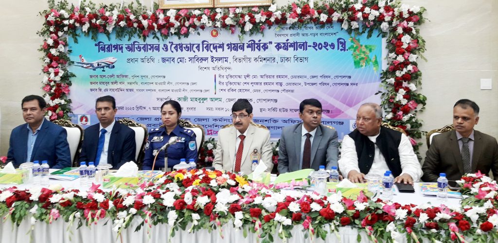 গোপালগঞ্জে নিরাপদ অভিবাসন ও বৈধভাবে বিদেশ গমন শীর্ষক দিনব্যাপী কর্মশালা অনুষ্ঠিত হয়েছে। জেলা প্রশাসন এবং জেলা কর্মসংস্থান ও জনশক্তি অফিস এ কর্মশালার আয়োজন করে। বুধবার (২২ নভেম্বর) সকাল ১১ টা থেকে বিকেল ৪টা পর্যন্ত “থাকবো ভালা, রাখবো ভালো দেশ, বৈধপথে প্রবাসী আয়-গড়বো বাংলাদেশ”। এই প্রতিপাদ্যে গোপালগঞ্জ সার্কিট হাউসের হল রুমে এ কর্মশালা অনুষ্ঠিত হয়। অনুষ্ঠানে প্রধান অতিথি ছিলেন ঢাকা বিভাগীয় কমিশনার মোঃ সাবিরুল ইসলাম।