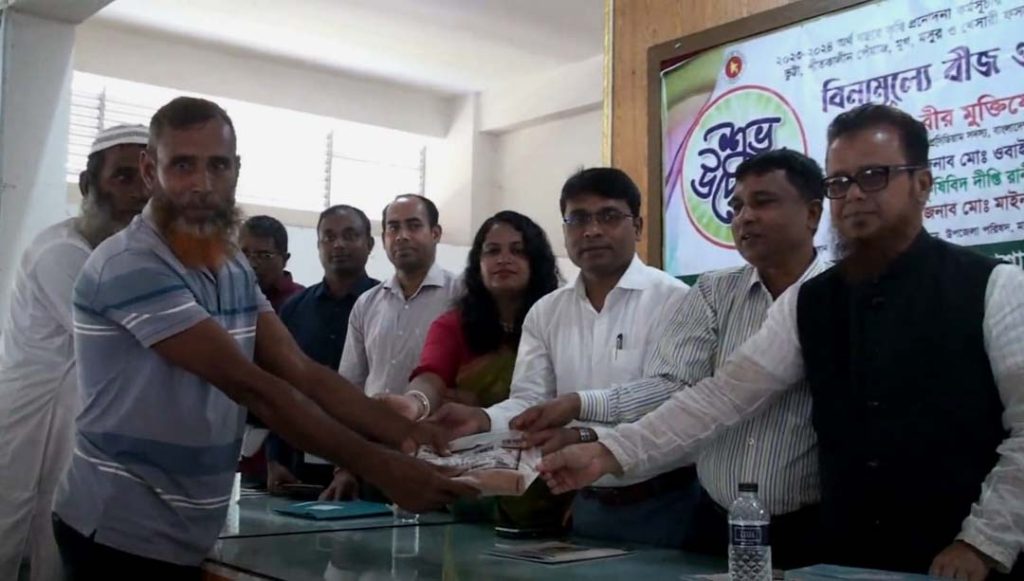 কৃষি অফিস সূত্রে জানা গেছে, ২০২৩-২০২৪ অর্থ বছরে সদর উপজেলায় বন্যার কারণে ক্ষতিগ্রস্ত প্রান্তিক সাড়ে ৫ হাজার কৃষককে ১ কেজি বারি সরিষা ১৪ বীজ, ১০ কেজি ডিএপি ও ১০ কেজি এমওপি রাসায়নিক সার বিনামূল্যে বিতরণ করা হয়।
