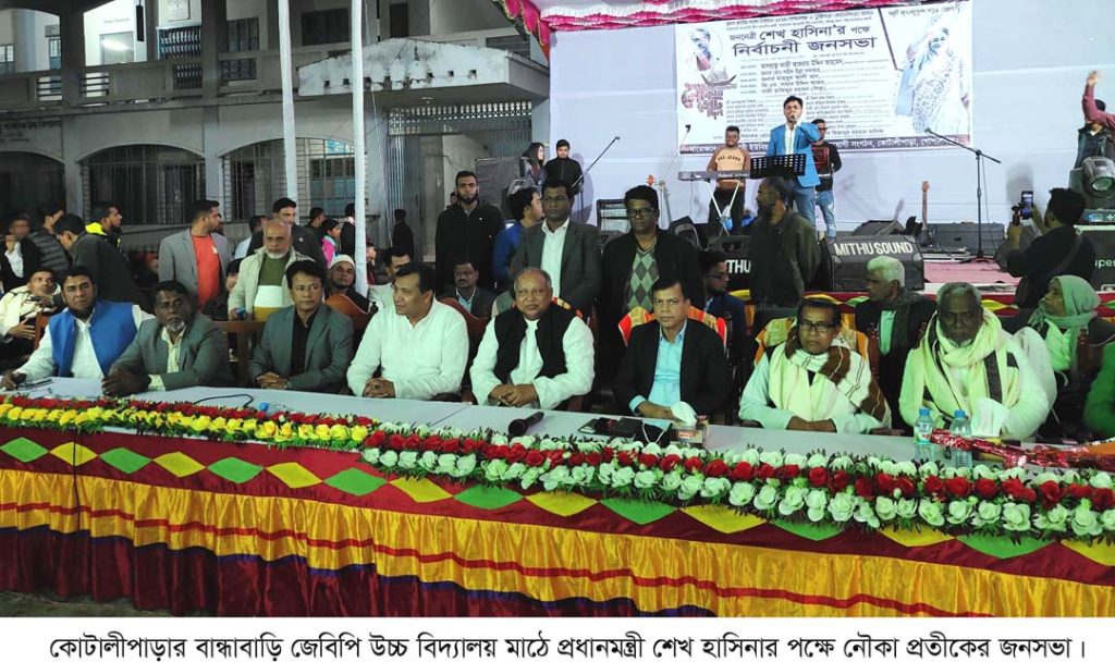 মঙ্গলবার (২৬ ডিসেম্বর) সন্ধ্যায় গোপালগঞ্জের কোটালীপাড়া উপজেলার বান্ধাবাড়ি ইউনিয়ন আওয়ামী লীগ আয়োজিত বান্ধাবাড়ি জেবিপি উচ্চ বিদ্যালয় মাঠে অনুষ্ঠিত গোপালগঞ্জ-৩ (কোটালীপাড়া-টুঙ্গিপাড়া) আসনে আওয়ামী লীগ মনোনীত প্রার্থী প্রধানমন্ত্রী শেখ হাসিনার পক্ষে নির্বাচনী জনসভায় প্রধান অতিথির বক্তব্যে তিনি এসব কথা বলেন।