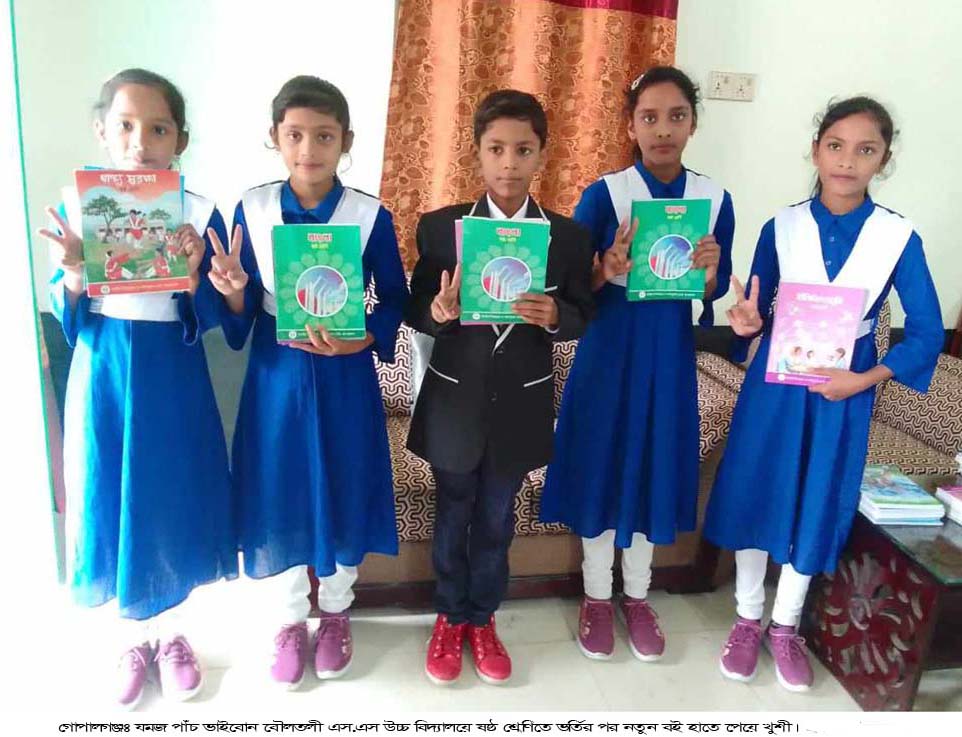 গোপালগঞ্জে যমজ পাঁচ ভাইবোন ষষ্ঠ শ্রেণির নতুন বই পেয়ে খুশী