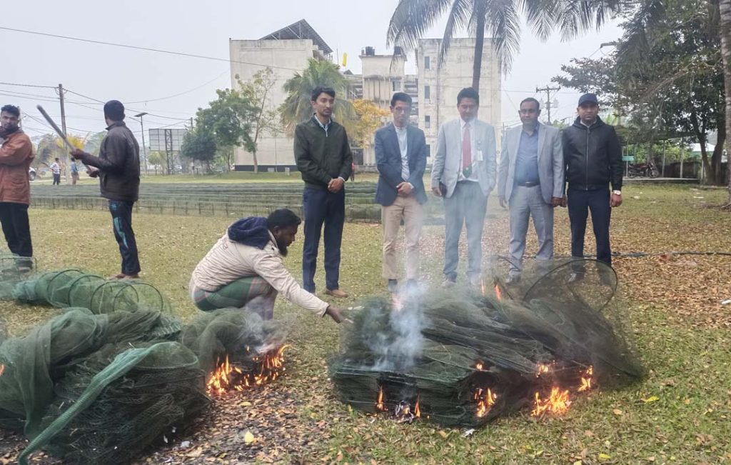 টুঙ্গিপাড়া উপজেলা নির্বাহী কর্মকর্তা মোঃ মঈনুল হকের নির্দেশনায় সিনিয়র মৎস্য কর্মকর্তা প্রদীপ কুমার দাম এই নিষিদ্ধ চায়না জাল জব্দ করেন। পরে উপজেলা পরিষদ প্রাঙ্গনে  জালগুলো  পুড়িয়ে ধ্বংস করা হয়।এসময় সহকারি কমিশনার (ভূমি) জহিরুল আলম, উপজেলা প্রকল্প বাস্তবায়ন কর্মকর্তা আরিফুল ইসলাম সহ মৎস্য কার্যালয়ের কর্মকর্তা কর্মচারীবৃন্দ উপস্থিত ছিলেন।