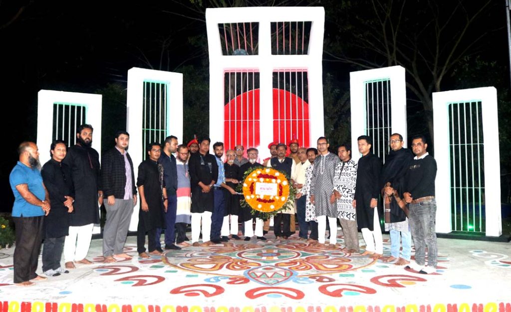 এর আগে ভাইস-চ্যান্সেলর প্রফেসর ড. এ. কিউ. এম. মাহবুবের নেতৃত্বে একুশের প্রথম প্রহরে (রাত ১২টা ০১ মিনিট) বিশ্ববিদ্যালয়ের শহিদ মিনারে পুষ্পস্তবক অর্পণ করে বিশ্ববিদ্যালয় পরিবার। এ সময় শিক্ষক সমিতি, বঙ্গবন্ধু পরিষদ, অফিসার্স এসোসিয়েশন, ছাত্রলীগ ও কর্মচারী সমিতির পক্ষ থেকেও শ্রদ্ধা নিবেদন করা হয়।