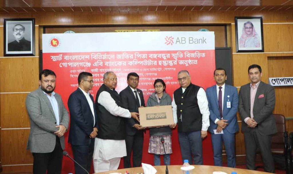 পরে গোপালগঞ্জের বঙ্গবন্ধু শেখ মুজিবুর রহমান বিজ্ঞান ও প্রযুক্তি বিশ্ববিদ্যালয়ের ফার্মেসী প্রথম বর্ষের শিক্ষার্থী সুজনা ইয়াসমিন মনি ও সরকারি বঙ্গবন্ধু কলেজের গণিত বিভাগের প্রথম বর্ষের শিক্ষার্থী তামজিদ হোসেনের হাতে ১টি করে ল্যাবটপ তুলে দেন। পরে এবি ব্যাংক সভাপতি দরিদ্র শিক্ষার্থীদের জন্য আরো ১৮টি ল্যাবটব জেলা প্রশাসকের কাছে হস্তান্তর করেন। এসব ল্যাবটপ পরবর্তিতে দরিদ্র মেধাবী ছাত্র ছাত্রীদের মধ্যে বিতরণ করা হবে বলে জানিয়েছেন জেলা প্রশাসক কার্যালয়ের নির্বাহী ম্যাজিস্ট্রেট মোঃ আরিফ হোসেন। এসময় গোপালগঞ্জের বিভিন্ন শিক্ষা প্রতিষ্ঠানের প্রধান শিক্ষক, এবি ব্যাংকের কর্মকর্তা ও বিভিন্ন গণমাধ্যম কর্মীরা উপস্থিত ছিলেন।