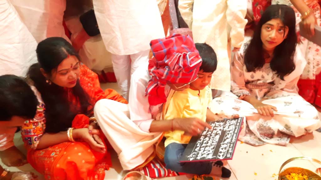 সরস্বতি পূঁজায় শিশুদের দেয়া হয় হাতে খড়ি