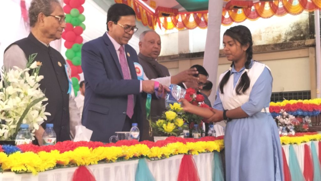 গোপালগঞ্জের টুঙ্গিপাড়ায় খান সাহেব শেখ মোশাররফ হোসেন স্কুল এন্ড কলেজের  কৃতি শিক্ষার্থীদের সম্বর্ধনা ও বার্ষিক ক্রীড়া প্রতিযোগিতার পুরস্কার বিতরণ করা হয়েছে ।শনিবার (৯ মার্চ) দুপুরে বিদ্যালয় চত্বরে আয়োজিত এই অনুষ্ঠানে প্রধান অতিথি ছিলেন মাধ্যমিক ও উচ্চ শিক্ষা অধিদপ্তরের মহাপরিচালক অধ্যাপক নেহাল আহমেদ।