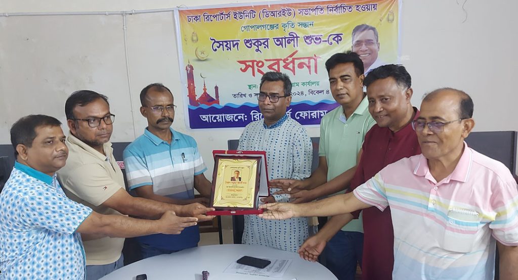 গোপালগঞ্জে সংবর্ধিত হলেন ঢাকা রিপোর্টার্স ইউনিটির সভাপতি শুকুর আলী শুভ
