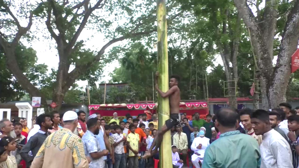 বাংলা নববর্ষ উপলক্ষে গোপালগঞ্জের কাশিয়ানীতে অনুষ্ঠিত হলো তৈলাক্ত কলা গাছ বেয়ে ওঠা, লাঠি খেলা, সাপ খেলা ও চোখ বেঁধে হাঁস ধরা প্রতিযোগীতা। ভিন্নধর্মী এই গ্রামীন খেলার আয়োজন করে প্রেসক্লাব কাশিয়ানী।