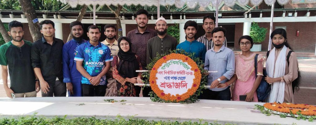 টুঙ্গিপাড়ায় জাতির পিতা বঙ্গবন্ধু শেখ মুজিবুর রহমানের সমাধিসৌধে শ্রদ্ধা জ্ঞাপন করেছেন গোপালগঞ্জের বঙ্গবন্ধু শেখ মুজিবুর রহমান বিজ্ঞান ও প্রযুক্তি বিশ্ববিদ্যালয় সাংবাদিক ফোরামের(বশেমুরবিপ্রবিসাফো) নবগঠিত চতুর্থ কমিটি। শ্রদ্ধা নিবেদন শেষে সংগঠনের সদস্যরা বঙ্গবন্ধু এবং তাঁর পরিবারের সদস্যদের আত্মার শান্তি কামনা করে ফাতেহা পাঠ ও বিশেষ দোয়া মোনাজাত করেন।বৃহস্পতিবার (১৬মে) বিকেল ৩ঘটিকায় সমাধিসৌধে এই শ্রদ্ধা নিবেদন করা হয়।