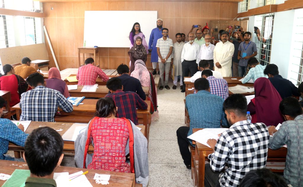 বিশ্ববিদ্যালয়ের ভাইস-চ্যান্সেলর প্রফেসর. এ. কিউ. এম. মাহবুব, প্রো-ভাইস-চ্যান্সেলর অধ্যাপক ড. সৈয়দ সামসুল আলম, ট্রেজারার বীর মুক্তিযোদ্ধা প্রফেসর ড. মো. মোবারক হোসেন, রেজিস্ট্রার মো. দলিলুর রহমান ও ভর্তি পরীক্ষা কমিটির সদস্যরা বিভিন্ন কক্ষ পরিদর্শন করেন।