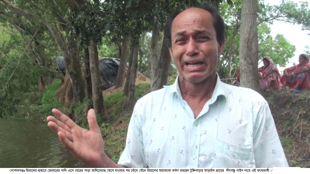 কি আর বলবো, কিছু বুঝে ওঠার আগেই মাত্র আধা ঘন্টার মধ্যে আমি সর্বস্ব হারিয়েছি । হঠাৎ করে জলোচ্ছাস এসে ৭ফুঁট উঁচু ঘেরের পাড় তলিয়ে দিল। সেই সাথে পুকুরের সব মাছ ভেসে গেল। একথা বলেই কান্নায় ভেঙ্গে পড়লো এই চাষী। আগামী ৭দিন পর মাছ ধরে বিক্রির চিন্তা ভাবনা করছিলাম। পুকুরে ৩/৪কেজি ওজনের রুই কাতলা ছিল। ভেবে ছিলাম কিছু মাছ বিক্রি করে খাবার কিনবো। তাতো ভেসে গেলো। আর আমাকেও ভাসিয়ে দিয়ে গেল। এ ক্ষতি আমি কি দিয়ে পোষাবো। ধারদেনা ও ধান বিক্রি করে ঘেরে মাছ চাষ করি। এই ঘেরের মাছ বিক্রি করে চলে সারা বছরের সংসার খরচ। এখন আমি কিভাবে চলবো আর কি করে বা দেনা প্ররিশোধ করবো তা বুঝতে পারছিনা। এসব কথা বলেন, ঘূর্ণিঝড় রিমালে ক্ষতিগ্রস্থ গোপালগঞ্জের টুঙ্গিপাড়া উপজেলার ডুমুরিয়া ইউনিয়নের দক্ষিণ তাড়াইল গ্রামের মৎস্যচাষী দীনবন্ধু গাইন।