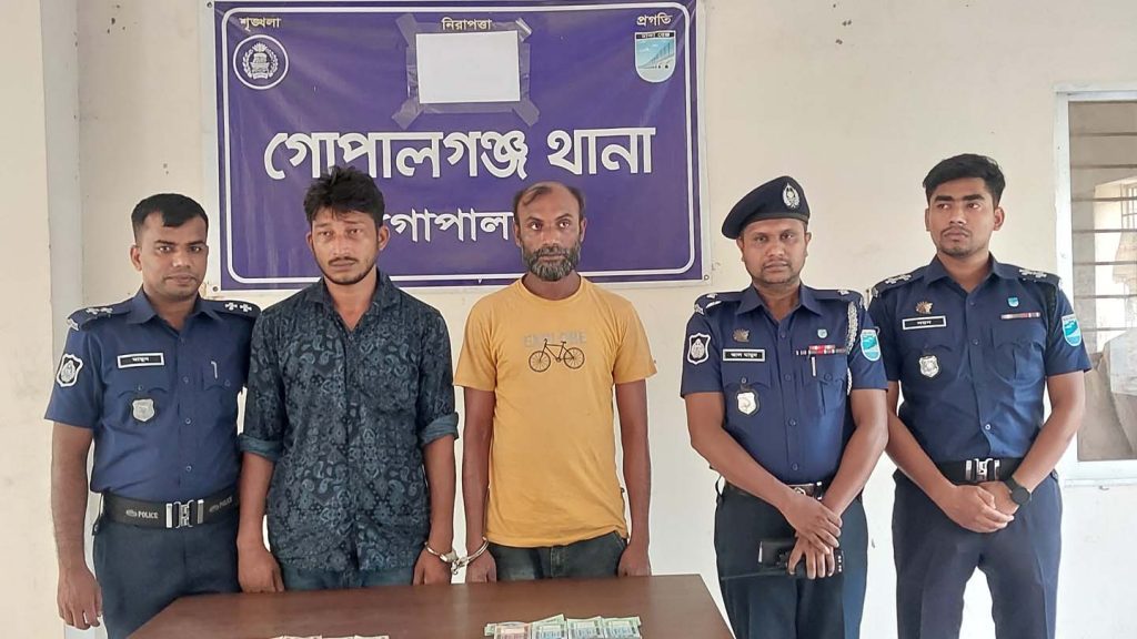 গোপালগঞ্জ সদর থানার ভারপ্রাপ্ত কর্মকর্তা(ওসি)মীর মো. সাজেদুর রহমান জানান, স্থানীয়রা অপরাধীদের আটক করে পুলিশকে খবর দিলে সদর থানর উপ-পরিদর্শক বিপ্লব কুমার দাস-এর নেতৃত্বে পুলিশ ঘটনাস্থল থেকে ওই দুই জনকে গ্রেপ্তার করে।এ সময় ‍পুলিশ বঙ্গবন্ধু সড়কের প্রেসক্লাব সংলগ্ন গোপালগঞ্জ টেলিকম এর সামনে থেকে গ্রেপ্তারকৃত মো.হাবিবুর রহমানের কাছ থেকে ২ লাখ ৪১ হাজার জাল টাকা ও নগদ ৩ লাখ ৮৩ হাজার টাকা উদ্ধার এবং একটি সাদা রংয়ের প্রাইভার কার জব্দ করা হয়। এছাড়া রিপন শেখ বাটুর কাছ থেকে ২ হাজার জাল টাকা উদ্ধার করা হয়।