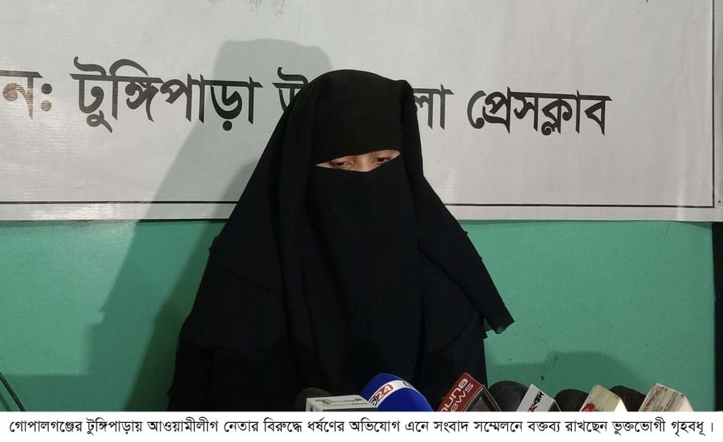 গোপালগঞ্জের টুঙ্গিপাড়ায় আওয়ামী লীগ নেতার বিরুদ্ধে ধর্ষণের অভিযোগ এনে বিচারের দাবি জানিয়েছেন এক গৃহবধূ।
