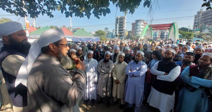 আজ শুক্রবার (১০ জানুয়ারী)  বাদ জুম্মা জেলা শহরের লঞ্চঘাট গোলচত্ত্বর এলাকায় বিক্ষোভ সমাবেশ অনুষ্ঠিত হয়। সমাবেশে মাওলানা আবুল কালাম আজাদ, মাওলানা এমাম হুসাইন, মাওলানা মুহাম্মদ শহিদুল্লাহ, মাওলানা লুতফুল রহমান, মাওলানা সাফায়েত হোসেন, মাওলানা সুলতান আহাম্মেদ মেজবাহ বক্তব্য রাখেন।