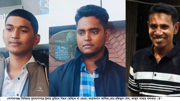 ভাবের সংসারে স্বচ্ছলতা ফেরানোর আশায় লিবিয়া হয়ে সমুদ্র পথে অবৈধভাবে ইতালি যাচ্ছিলেন গোপালগঞ্জের মুকসুদপুর উপজেলার রাঘদি ইউনিয়নের চরপ্রসন্নদী গ্রামের তিন যুবক। ভূমধ্যসাগরে নৌকা ডুবিতে প্রাণ হারায় তারা।মর্মান্তিক মৃত্যুর সংবাদে ৩ যুবকের বাড়িতে চলছে শোকের মাতম। সেই সাথে এলাকায় নেমেছে শোকের ছায়া।নিহতদের মরদেহ উদ্ধার করে দ্রুত দেশে ফিরিয়ে আনার দাবি জানিয়েছেন স্বজনরা ও প্রতিবেশীরা।