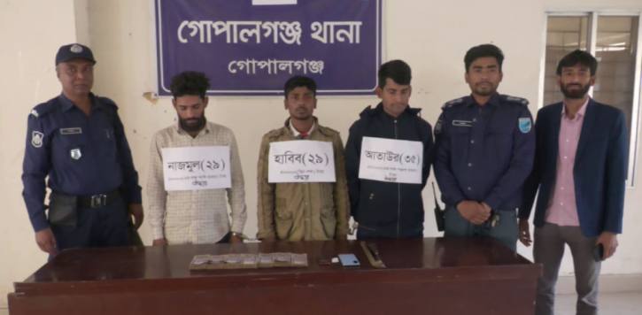 গোপালগঞ্জ ধান গবেষণা ইনষ্টিটিউটে ১০ লক্ষাধিক টাকা চুরি মামলায় আন্তজেলা চোর চক্রের ৩ সদস্যকে গ্রেপ্তার করেছে পুলিশ। এসময় চুরি হওয়া ৬ লক্ষ ৩০ হাজার টাকা ও চুরি কাজে ব্যবহৃত সরঞ্জাম উদ্ধার করা হয়।