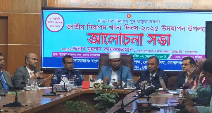 ‘খাদ্য হোক নিরাপদ, সুস্থ থাকুক জনগণ’ এই স্লোগানে গোপালগঞ্জে জাতীয় নিরাপদ খাদ্য দিবসের আলোচনা সভা অনুষ্ঠিত হয়েছে।